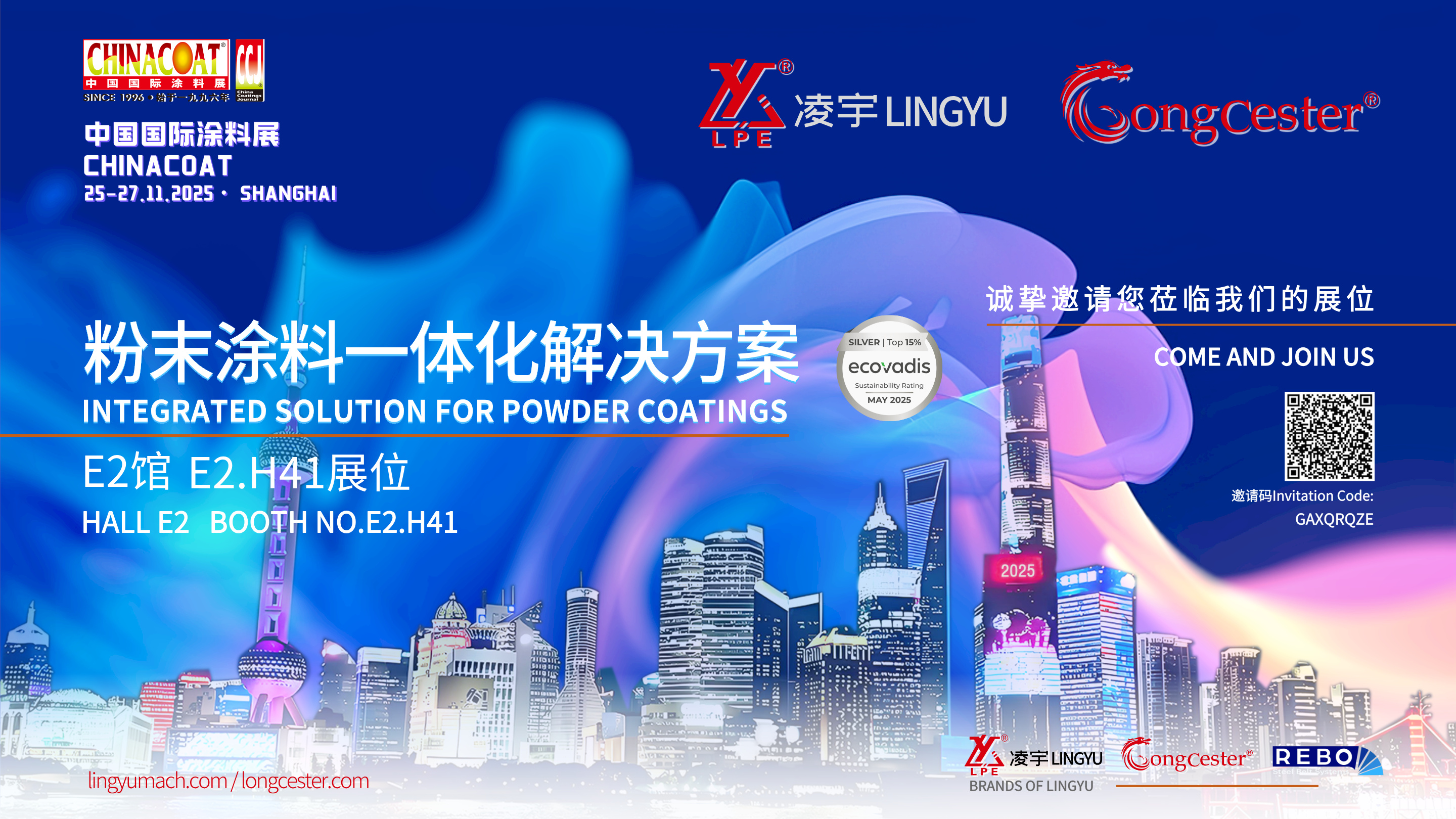 在即將于2025年11月25日至27日舉辦的中國國際涂料展(ChinaCoat 2025)上,上海新國際博覽中心(SNIEC)將再次成為全球涂料行業(yè)的焦點舞臺。 凌宇&龍彩將攜最新技術與創(chuàng)新成果亮相E2.H41展位,以獨特的展位設計與豐富的展品展示,吸引來自世界各地行業(yè)專家與客戶的關注。 展會期間,凌宇將重點展示其自動化集成生產線、混合機、擠出機、壓片機、磨粉機、邦定機及實驗室設備等核心產品,并提供詳盡的技術資料與應用方案。公司將派出經驗豐富的技術團隊現(xiàn)場答疑,與參觀者深入交流,共同探討粉末涂料生產的最新趨勢與工藝優(yōu)化方向,挖掘合作新契機。我們誠摯邀請您蒞臨E2.H41展位,共同見證粉末涂料智能制造的新高度。